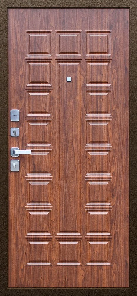 Надежная входная Дверь Спартак Орех темный премиум класса по цене 36 167 руб. Большая толщина стали защитит от проникновения в ваш дом, квартиру или коттедж. Используется очень качественная фурнитура: замки, цилиндры, ручки, защелки. Покрытие и отделка двери изготовлено под внимательным контролем производителя. Дверь имеет долгий срок службы и гарантию.